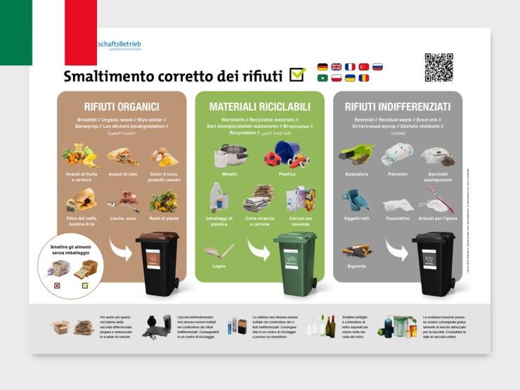 Bitte trennen Sie Ihren Abfall nach Bioabfall, Wertstoffen, Restmüll, Elektrokleingeräte und Batterien, Altglas und Schadstoffe. Das freut die Umwelt und senkt die Kosten.