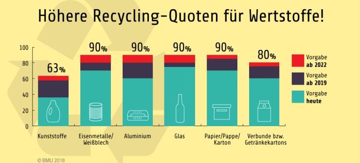 2022 gelten die folgenden gesetzlichen Recyclingquoten: