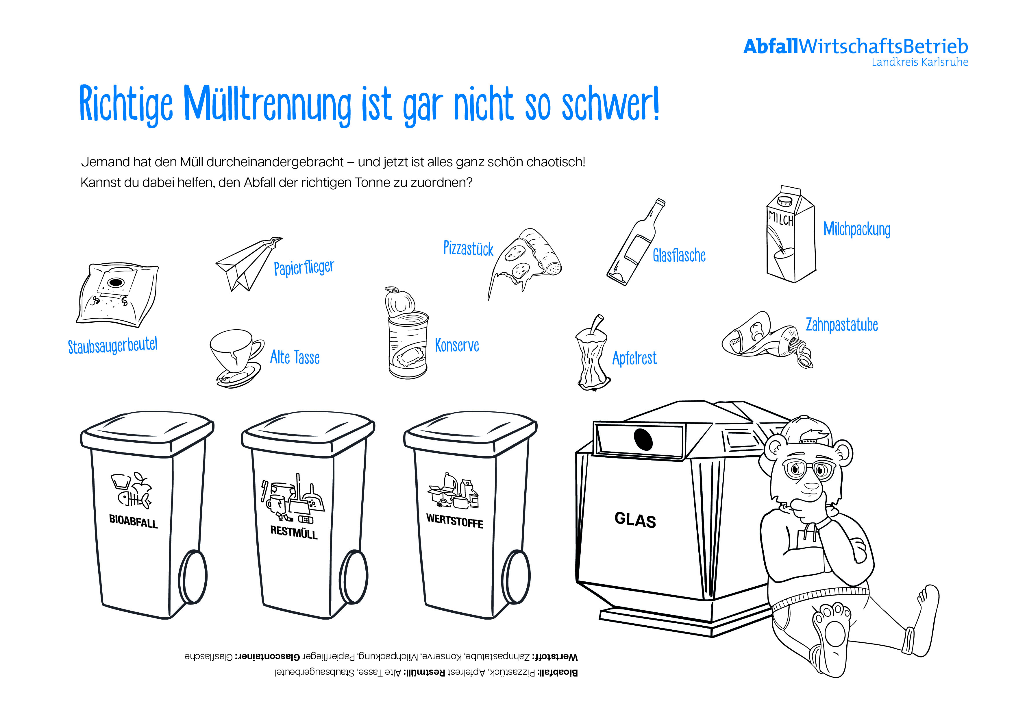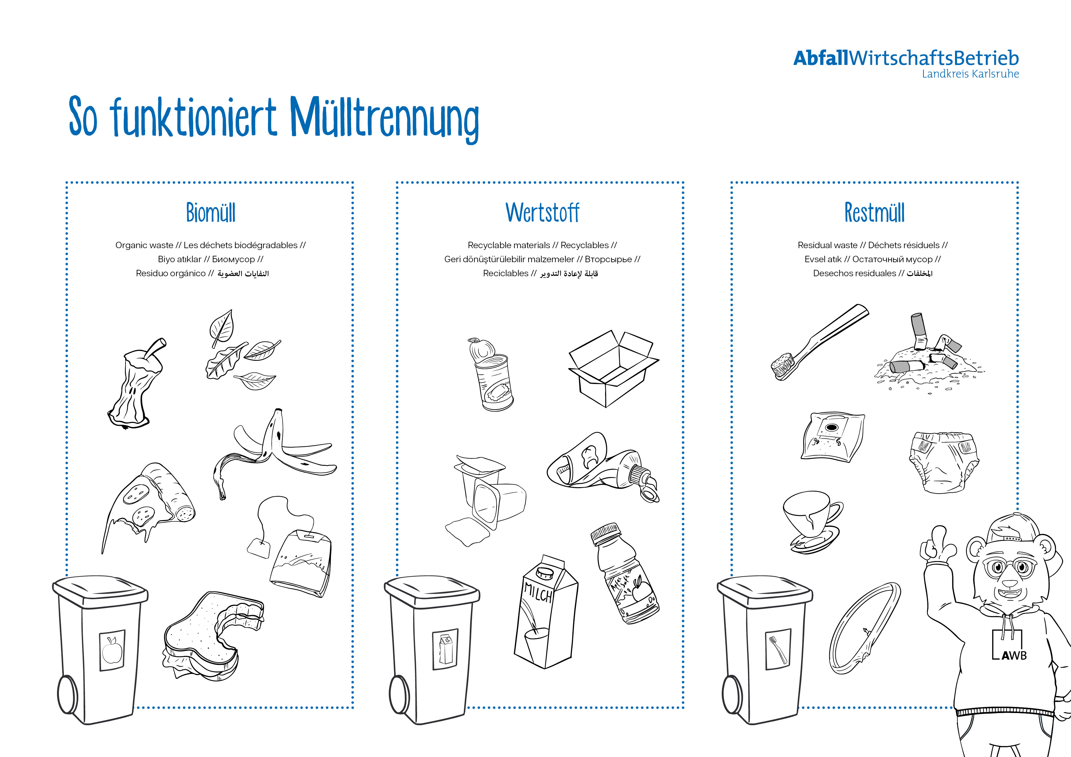 Mit unseren Ausmalbildern und den Kinderseiten in unserer Kundenzeitschrift "Nimms mit" erhalten die Kinder und Jugendlichen einen ersten Einblick in die Abfalltrennung und -vermeidung.