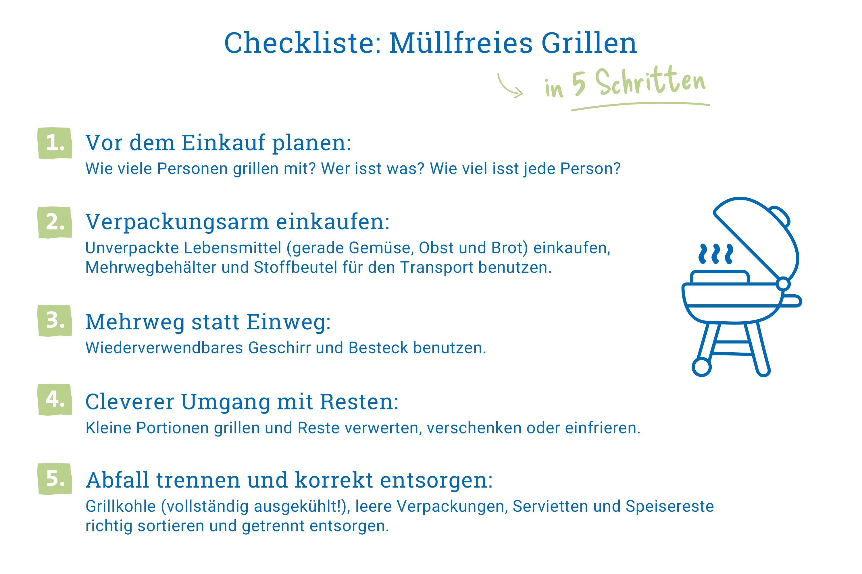 Sommerzeit ist Grillzeit! Doch neben köstlichem Grillduft und geselligem Beisammensein bleibt oft auch eines zurück: jede Menge Müll. Das muss nicht sein! Wir zeigen, wie mit einfachen Tipps Verpackungen, Essensreste und Einwegartikel vermieden werden – für einen nachhaltigen Grillgenuss mit gutem Gewissen. Weniger Abfall, mehr Geschmack.