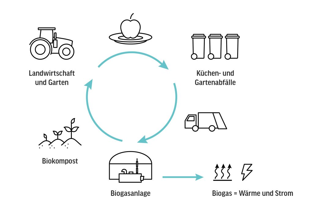 In der Kreislaufwirtschaft werden bestehende Materialien und Produkte so lange wie möglich geteilt, geleast, wiederverwendet, repariert, aufgearbeitet und recycelt, um Abfälle damit auf ein Minimum zu reduzieren. Es geht also darum, aus Abfällen einen Wertstoff herzustellen, der möglichst lange im Kreislauf genutzt werden kann. Bioabfall stellt dabei das Paradebeispiel einer funktionierenden Kreislaufwirtschaft dar. Natürliche Prozesse machen aus den „organischen Abfällen“ neue Biomasse, die sich schadlos in die natürliche Umwelt einfügt. Das bedeutet: Aus Speiseresten wird Komposterde, die neuen Pflanzen beim Wachsen hilft.